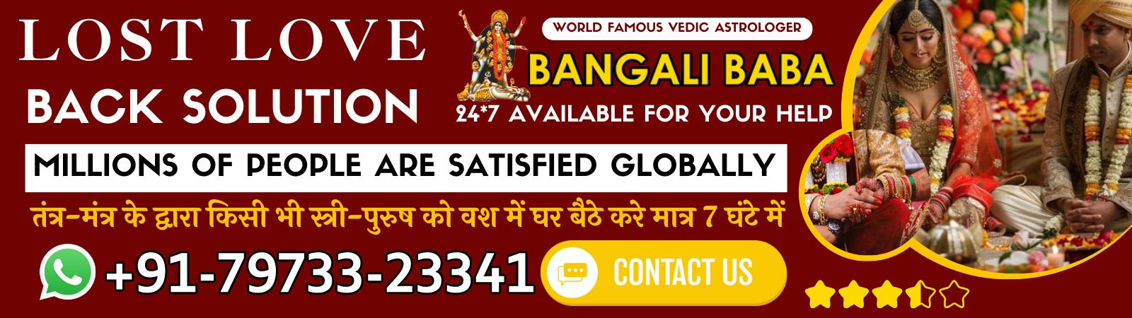 Astrologer Bangali Baba Ji has been delivering outstanding Vedic astrology services globally for over the years. With his deep understanding and skills, he has assisted people in uncovering insights about their lives and discovering effective ways to address their challenges. Whether your questions are about careers, finances, relationships, or any other life area, Bangali Baba Ji has the solutions you seek.